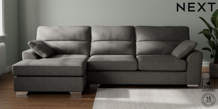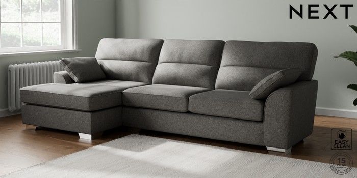 7.2.10 Buy Stamford Highback Large Sofa Chaise - Left Hand Tweedy Blend Easy Clean Dark Grey Large Square Angle - Chrome Metal from the Next UK online shop Click here to use our accessible website