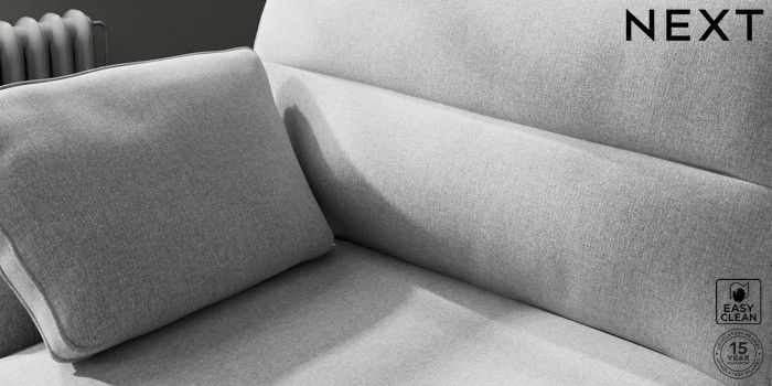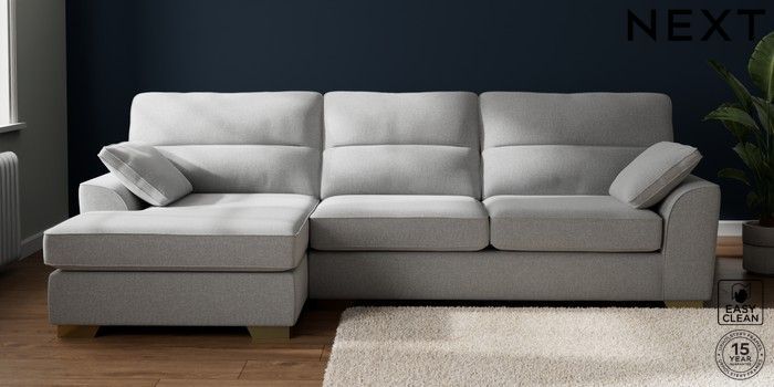 7.2.10 Buy Stamford Highback Large Sofa Chaise - Left Hand Tweedy Blend Easy Clean Light Silver Grey Large Square Angle - Brushed Brass from the Next UK online shop Click here to use our accessible website