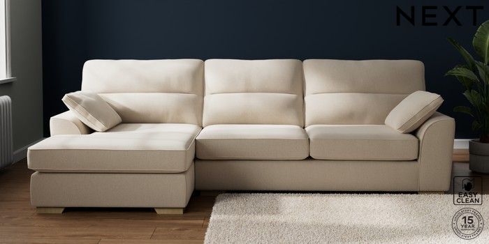 7.2.10 Buy Stamford Highback Large Sofa Chaise - Left Hand Tweedy Blend Easy Clean Oyster Large Square Angle - Light from the Next UK online shop Click here to use our accessible website