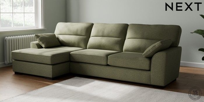 7.2.10 Buy Stamford Highback Large Sofa Chaise - Left Hand Tweedy Chenille Mid Moss Green Large Square Angle - Dark from the Next UK online shop Click here to use our accessible website