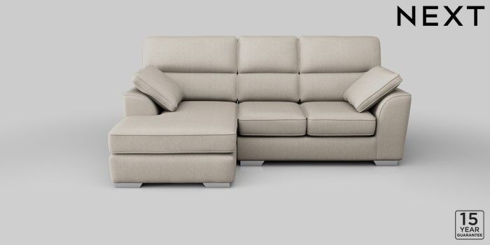 6.12.1 Buy Stamford Highback Large Sofa Chaise - Left Hand Tweedy Chenille Oyster Large Square Angle - Chrome Metal from the Next UK online shop Click here to use our accessible website
