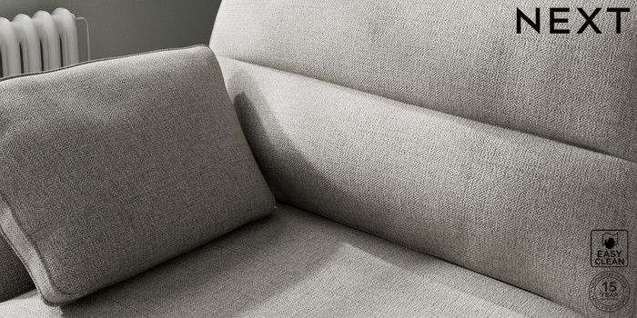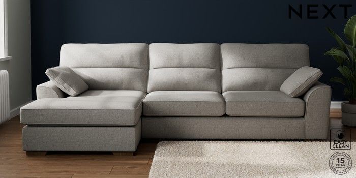 7.2.10 Buy Stamford Highback Large Sofa Chaise - Left Hand Woven Chenille Easy Clean Light Grey Large Square Angle - Mid from the Next UK online shop Click here to use our accessible website