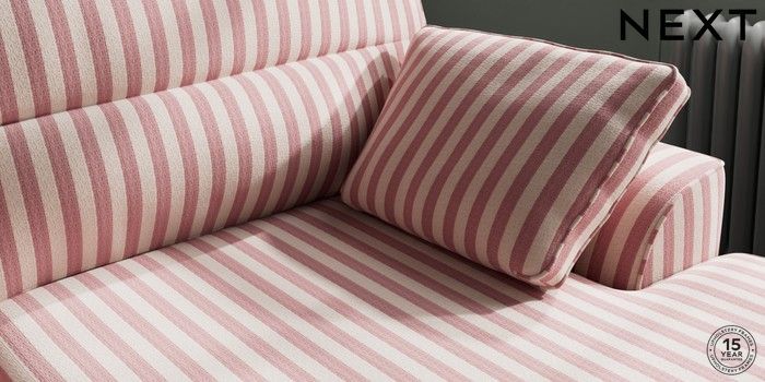 7.3.1 Buy Stamford Highback Large Sofa Chaise - Right Hand Bold Chenille Stripe Dark Pink Large Square Angle - Gunmetal from the Next UK online shop Click here to use our accessible website
