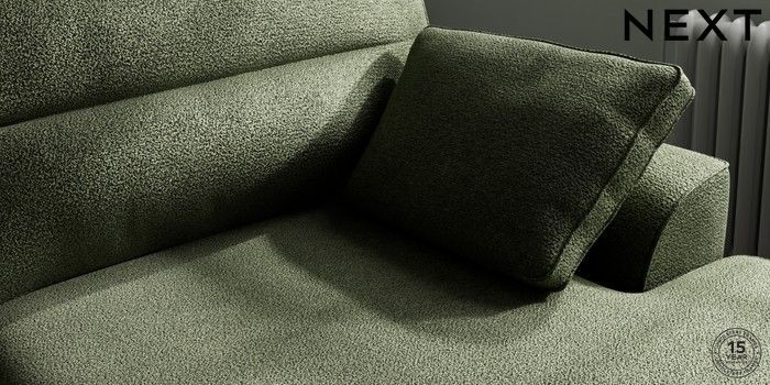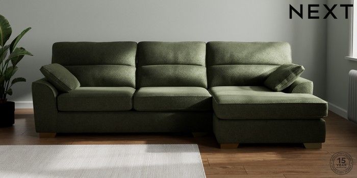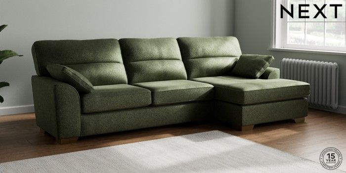 7.2.10 Buy Stamford Highback Large Sofa Chaise - Right Hand Boucle Chenille Dark Moss Green Large Square Angle - Brushed Brass from the Next UK online shop Click here to use our accessible website