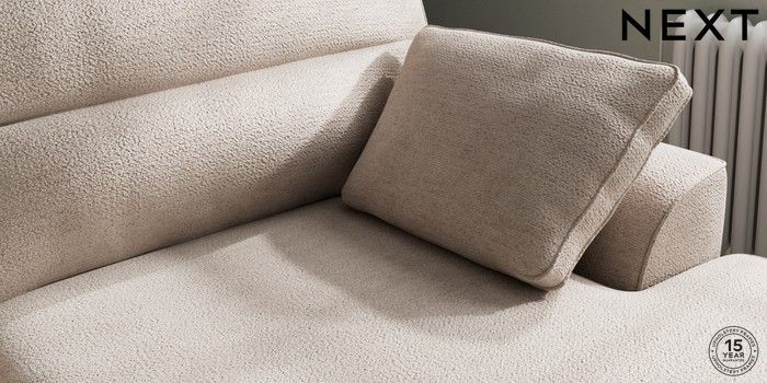 7.2.10 Buy Stamford Highback Large Sofa Chaise - Right Hand Boucle Chenille Light Natural Large Square Angle - Brushed Brass from the Next UK online shop Click here to use our accessible website