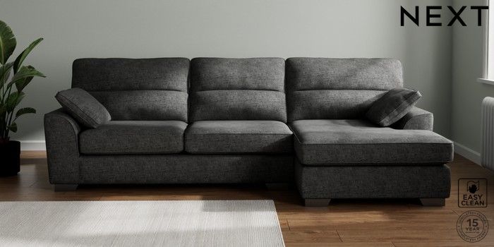 7.2.10 Buy Stamford Highback Large Sofa Chaise - Right Hand Boucle Weave Easy Clean Charcoal Grey Large Square Angle - Gunmetal from the Next UK online shop Click here to use our accessible website