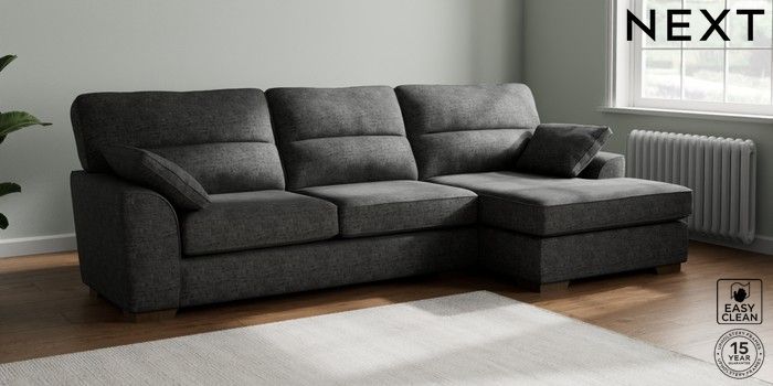 7.2.10 Buy Stamford Highback Large Sofa Chaise - Right Hand Boucle Weave Easy Clean Charcoal Grey Large Square Angle - Mid from the Next UK online shop Click here to use our accessible website