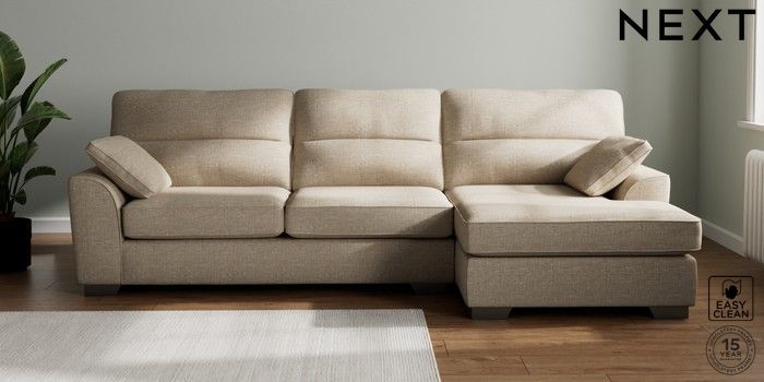 7.3.1 Buy Stamford Highback Large Sofa Chaise - Right Hand Boucle Weave Easy Clean Dark Natural Large Square Angle - Gunmetal from the Next UK online shop Click here to use our accessible website