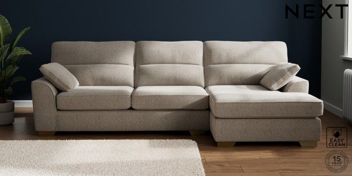 7.2.10 Buy Stamford Highback Large Sofa Chaise - Right Hand Chunky Boucle Easy Clean Dove Large Square Angle - Brushed Brass from the Next UK online shop Click here to use our accessible website