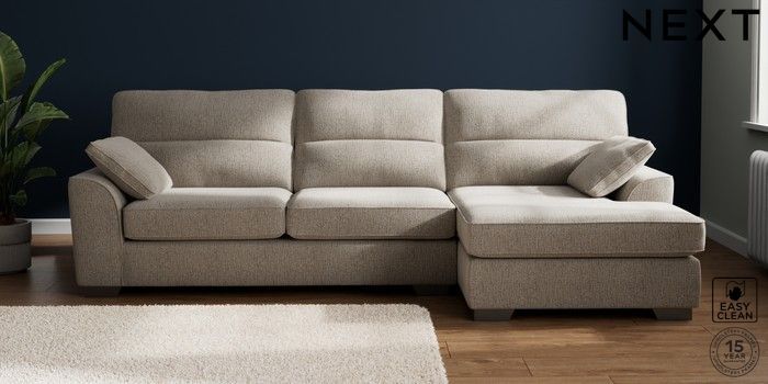 7.2.10 Buy Stamford Highback Large Sofa Chaise - Right Hand Chunky Boucle Easy Clean Dove Large Square Angle - Gunmetal from the Next UK online shop Click here to use our accessible website