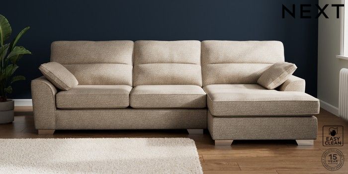7.3.1 Buy Stamford Highback Large Sofa Chaise - Right Hand Chunky Boucle Easy Clean Mid Natural Large Square Angle - Chrome Metal from the Next UK online shop Click here to use our accessible website