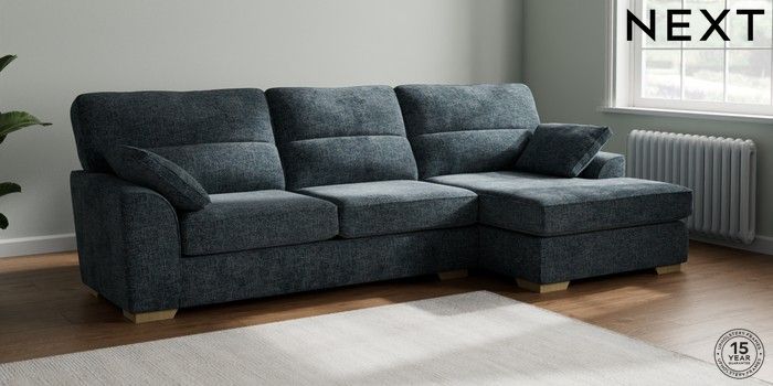 7.2.10 Buy Stamford Highback Large Sofa Chaise - Right Hand Chunky Chenille Dark Navy Blue Large Square Angle - Light from the Next UK online shop Click here to use our accessible website