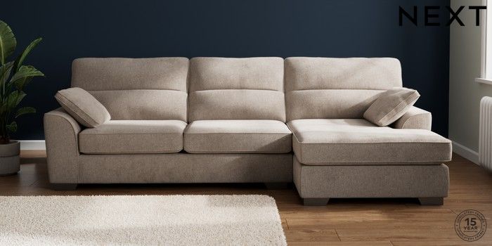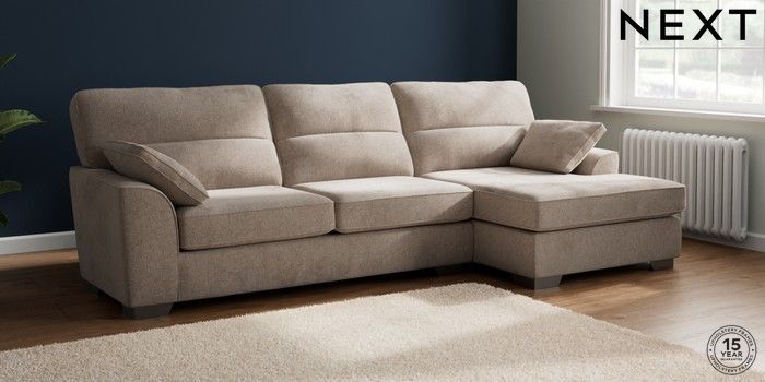 7.2.10 Buy Stamford Highback Large Sofa Chaise - Right Hand Chunky Chenille Light Dove Large Square Angle - Gunmetal from the Next UK online shop Click here to use our accessible website