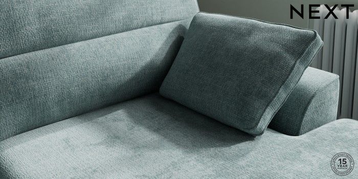 7.3.1 Buy Stamford Highback Large Sofa Chaise - Right Hand Chunky Chenille Light Teal Green Large Square Angle - Chrome Metal from the Next UK online shop Click here to use our accessible website