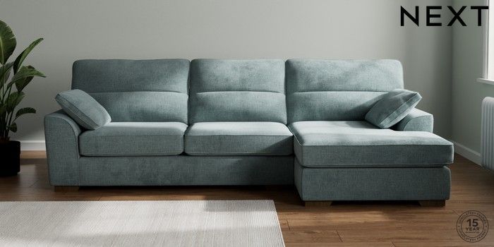 7.2.10 Buy Stamford Highback Large Sofa Chaise - Right Hand Chunky Chenille Light Teal Green Large Square Angle - Mid from the Next UK online shop Click here to use our accessible website