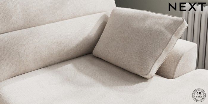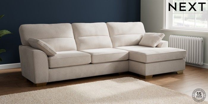 7.2.10 Buy Stamford Highback Large Sofa Chaise - Right Hand Chunky Chenille Oyster Large Square Angle - Brushed Brass from the Next UK online shop Click here to use our accessible website