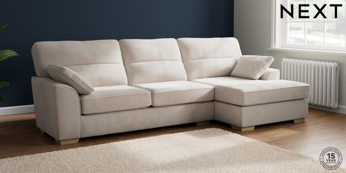 7.2.10 Buy Stamford Highback Large Sofa Chaise - Right Hand Chunky Chenille Oyster Large Square Angle - Light from the Next UK online shop Click here to use our accessible website