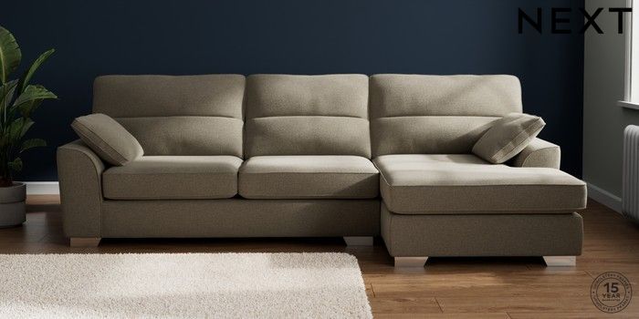 7.3.1 Buy Stamford Highback Large Sofa Chaise - Right Hand Chunky Marl Light Olive Green Large Square Angle - Chrome Metal from the Next UK online shop Click here to use our accessible website