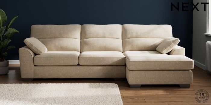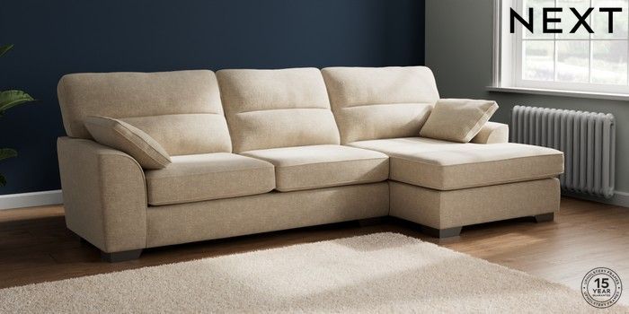 7.2.10 Buy Stamford Highback Large Sofa Chaise - Right Hand Chunky Weave Cream Large Square Angle - Gunmetal from the Next UK online shop Click here to use our accessible website