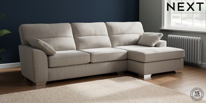 6.12.1 Buy Stamford Highback Large Sofa Chaise - Right Hand Chunky Weave Dove Grey Large Square Angle - Chrome Metal from the Next UK online shop Click here to use our accessible website