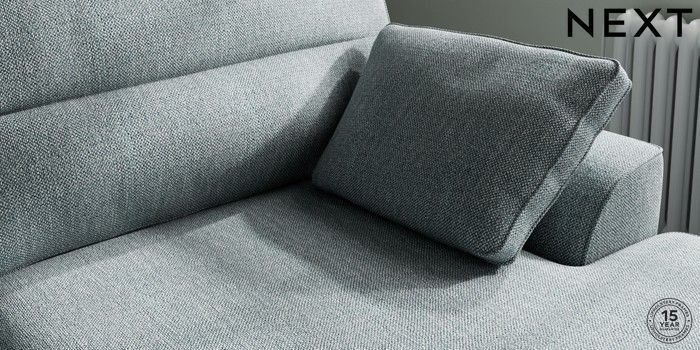 7.2.10 Buy Stamford Highback Large Sofa Chaise - Right Hand Chunky Weave Mid Blue Large Square Angle - Chrome Metal from the Next UK online shop Click here to use our accessible website