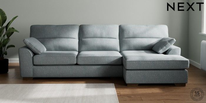 7.2.10 Buy Stamford Highback Large Sofa Chaise - Right Hand Chunky Weave Mid Blue Large Square Angle - Mid from the Next UK online shop Click here to use our accessible website