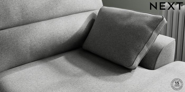 7.2.10 Buy Stamford Highback Large Sofa Chaise - Right Hand Chunky Weave Mid Grey Large Square Angle - Brushed Brass from the Next UK online shop Click here to use our accessible website