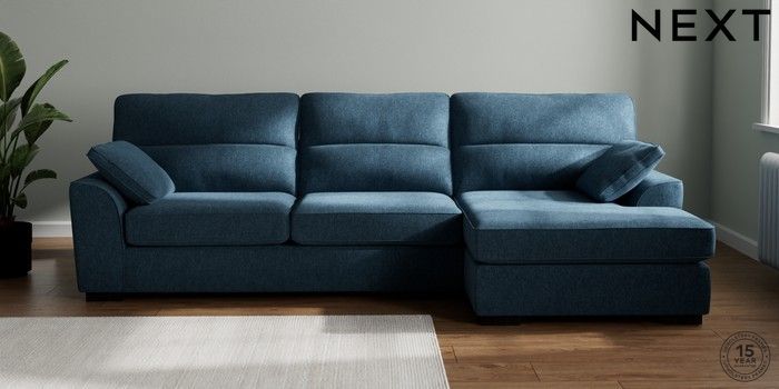 7.2.10 Buy Stamford Highback Large Sofa Chaise - Right Hand Cotswold Chenille Dark Blue Large Square Angle - Dark from the Next UK online shop Click here to use our accessible website