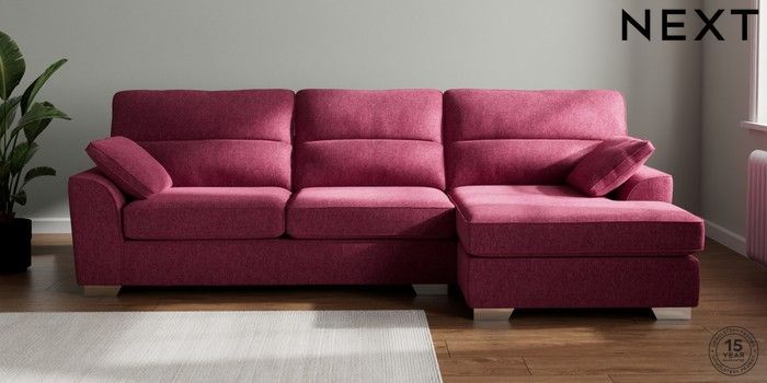 7.2.10 Buy Stamford Highback Large Sofa Chaise - Right Hand Cotswold Chenille Dark Raspberry Pink Large Square Angle - Chrome Metal from the Next UK online shop Click here to use our accessible website