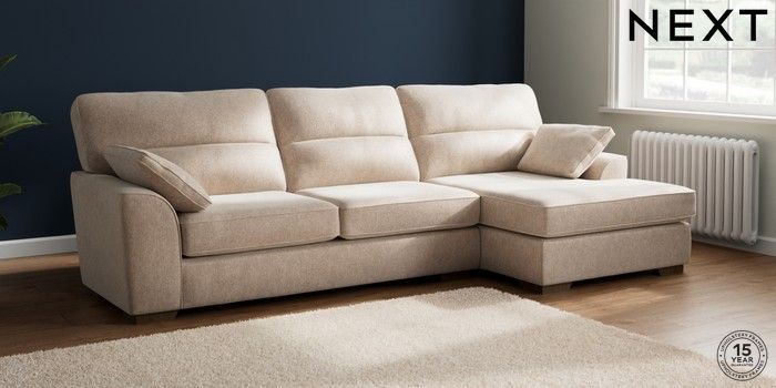 7.2.10 Buy Stamford Highback Large Sofa Chaise - Right Hand Cotswold Chenille Light Natural Large Square Angle - Mid from the Next UK online shop Click here to use our accessible website