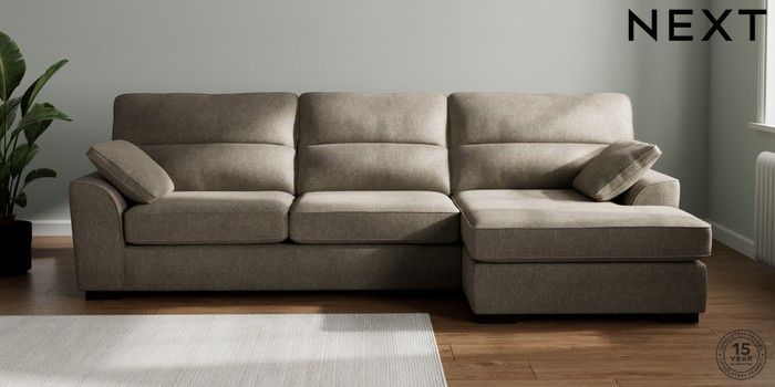 7.2.6 Buy Stamford Highback Large Sofa Chaise - Right Hand Cotswold Chenille Mid Mink Brown Large Square Angle - Dark from the Next UK online shop Click here to use our accessible website