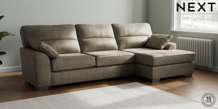 7.2.6 Buy Stamford Highback Large Sofa Chaise - Right Hand Cotswold Chenille Mid Mink Brown Large Square Angle - Gunmetal from the Next UK online shop Click here to use our accessible website