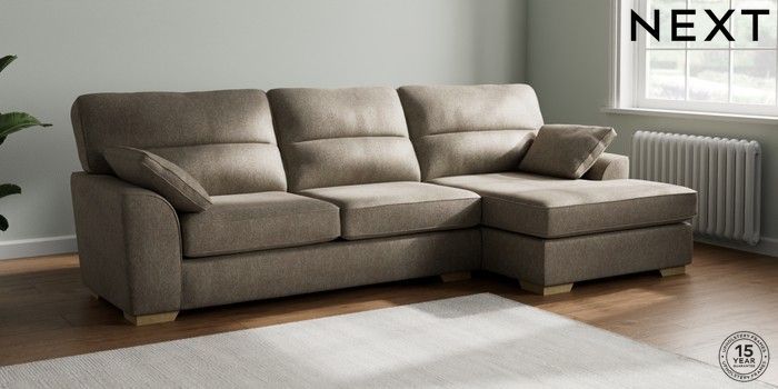 7.2.6 Buy Stamford Highback Large Sofa Chaise - Right Hand Cotswold Chenille Mid Mink Brown Large Square Angle - Light from the Next UK online shop Click here to use our accessible website