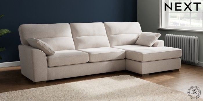 7.2.10 Buy Stamford Highback Large Sofa Chaise - Right Hand Cotswold Chenille Oyster Large Square Angle - Mid from the Next UK online shop Click here to use our accessible website