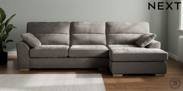 7.2.10 Buy Stamford Highback Large Sofa Chaise - Right Hand Distressed Velour French Grey Large Square Angle - Light from the Next UK online shop Click here to use our accessible website