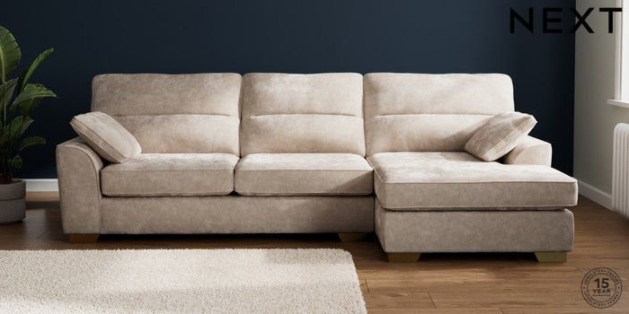 7.2.10 Buy Stamford Highback Large Sofa Chaise - Right Hand Distressed Velour Mid Natural Large Square Angle - Brushed Brass from the Next UK online shop Click here to use our accessible website