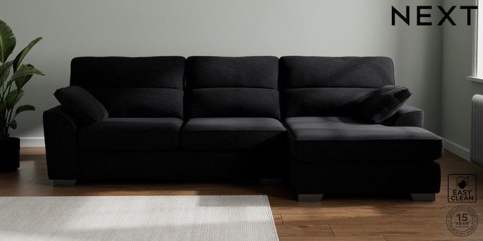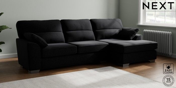 7.3.1 Buy Stamford Highback Large Sofa Chaise - Right Hand Fine Chenille Easy Clean Black Large Square Angle - Gunmetal from the Next UK online shop Click here to use our accessible website