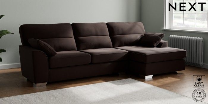 7.3.1 Buy Stamford Highback Large Sofa Chaise - Right Hand Fine Chenille Easy Clean Chocolate Brown Large Square Angle - Chrome Metal from the Next UK online shop Click here to use our accessible website