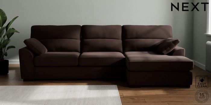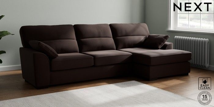 7.2.10 Buy Stamford Highback Large Sofa Chaise - Right Hand Fine Chenille Easy Clean Chocolate Brown Large Square Angle - Dark from the Next UK online shop Click here to use our accessible website