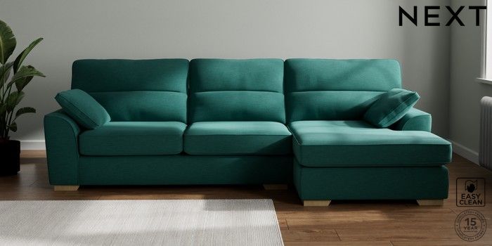 7.2.10 Buy Stamford Highback Large Sofa Chaise - Right Hand Fine Chenille Easy Clean Dark Juniper Green Large Square Angle - Light from the Next UK online shop Click here to use our accessible website