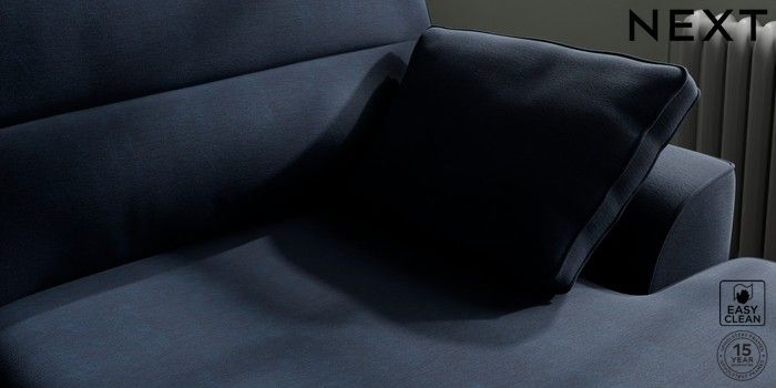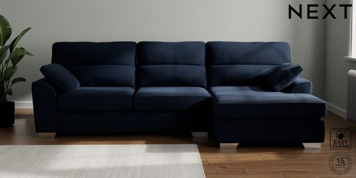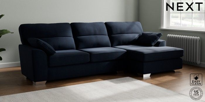 7.3.1 Buy Stamford Highback Large Sofa Chaise - Right Hand Fine Chenille Easy Clean Dark Navy Blue Large Square Angle - Chrome Metal from the Next UK online shop Click here to use our accessible website