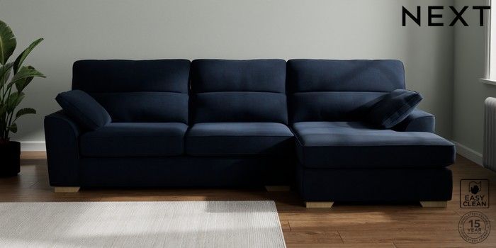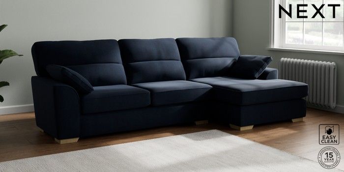 7.2.10 Buy Stamford Highback Large Sofa Chaise - Right Hand Fine Chenille Easy Clean Dark Navy Blue Large Square Angle - Light from the Next UK online shop Click here to use our accessible website