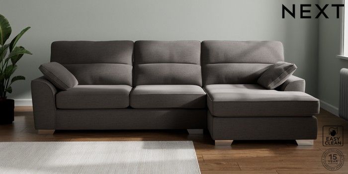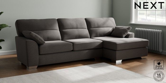 7.3.1 Buy Stamford Highback Large Sofa Chaise - Right Hand Fine Chenille Easy Clean Dark Smoke Grey Large Square Angle - Chrome Metal from the Next UK online shop Click here to use our accessible website