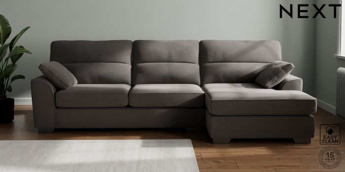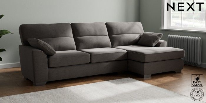 7.3.1 Buy Stamford Highback Large Sofa Chaise - Right Hand Fine Chenille Easy Clean Dark Smoke Grey Large Square Angle - Gunmetal from the Next UK online shop Click here to use our accessible website