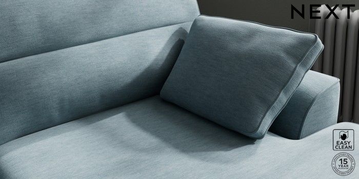 7.2.10 Buy Stamford Highback Large Sofa Chaise - Right Hand Fine Chenille Easy Clean Mid Blue Large Square Angle - Dark from the Next UK online shop Click here to use our accessible website