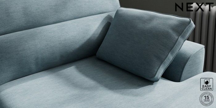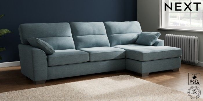 7.3.1 Buy Stamford Highback Large Sofa Chaise - Right Hand Fine Chenille Easy Clean Mid Blue Large Square Angle - Gunmetal from the Next UK online shop Click here to use our accessible website
