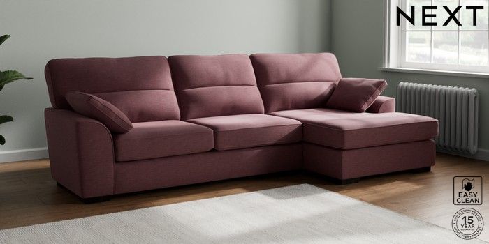 7.3.1 Buy Stamford Highback Large Sofa Chaise - Right Hand Fine Chenille Easy Clean Mid Mulberry Purple Large Square Angle - Dark from the Next UK online shop Click here to use our accessible website