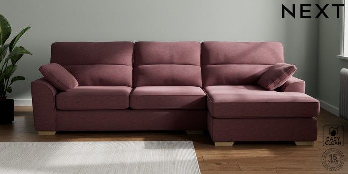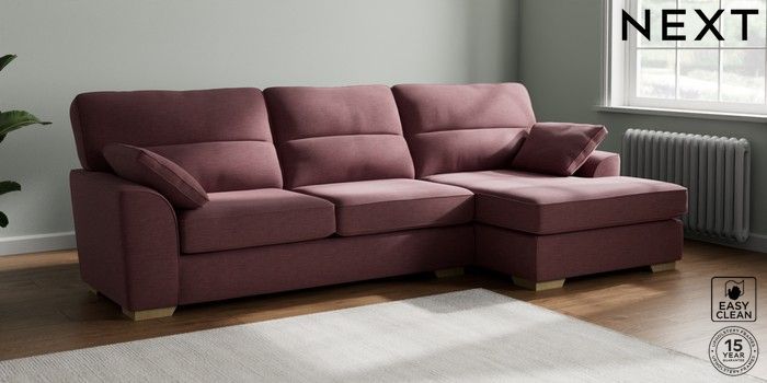7.3.1 Buy Stamford Highback Large Sofa Chaise - Right Hand Fine Chenille Easy Clean Mid Mulberry Purple Large Square Angle - Light from the Next UK online shop Click here to use our accessible website