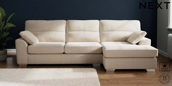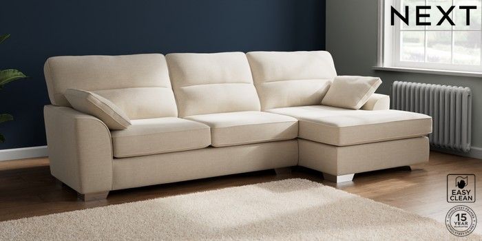 7.2.10 Buy Stamford Highback Large Sofa Chaise - Right Hand Fine Chenille Easy Clean Oyster Large Square Angle - Chrome Metal from the Next UK online shop Click here to use our accessible website