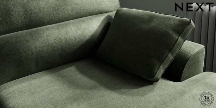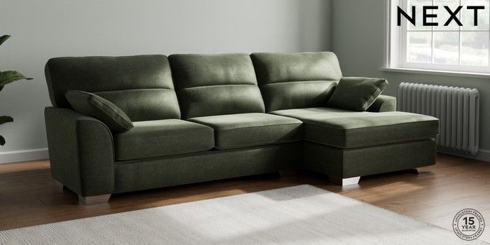 7.2.6 Buy Stamford Highback Large Sofa Chaise - Right Hand Luxe Chenille Mid Green Large Square Angle - Chrome Metal from the Next UK online shop Click here to use our accessible website